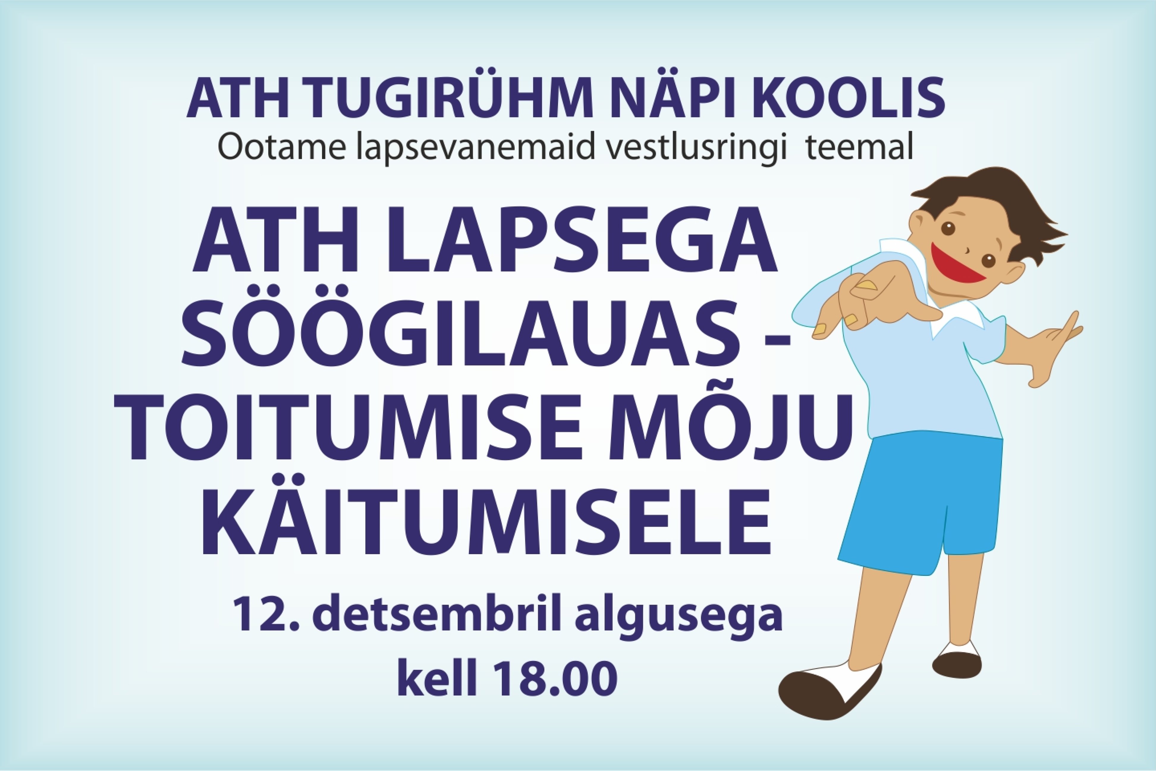 Järgmine kohtumine 12. detsembril. Kui Te tulete koos lapsega, siis palume eelnevalt registreeruda Näpi kooli kodulehel kuni 11.12 hommikul kell 8.00.
