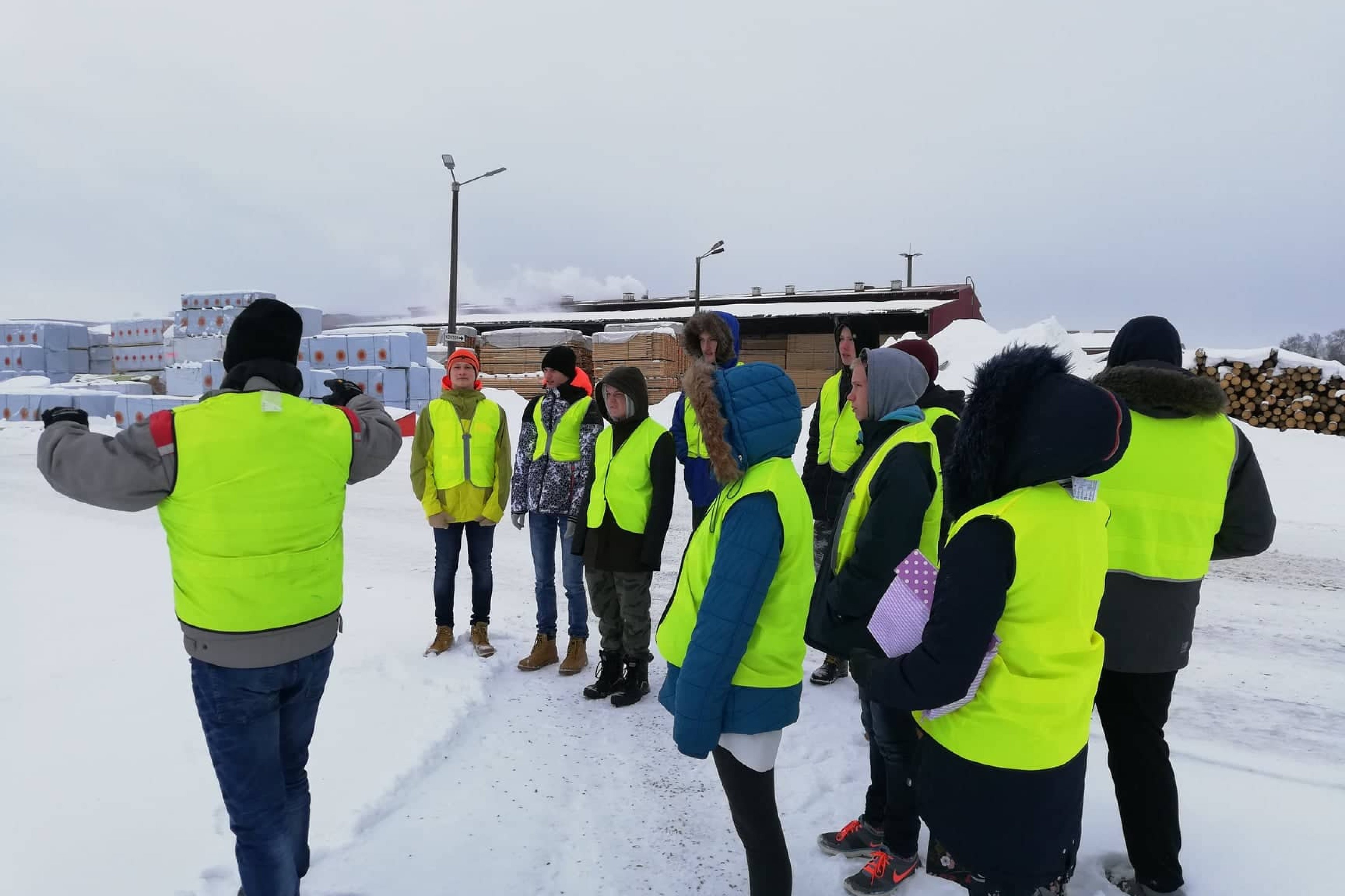 9a, 9b ja LÕ õpilased külastasid täna puidutöölemisettevõtet Stora Enso Eesti AS Näpi Saeveski. Tootmisjuht tutvustas ringkäigu alguses kõigile osalistele ohutusnõudeid ja jagas kõigile vastavad isikukaitsevahendid.