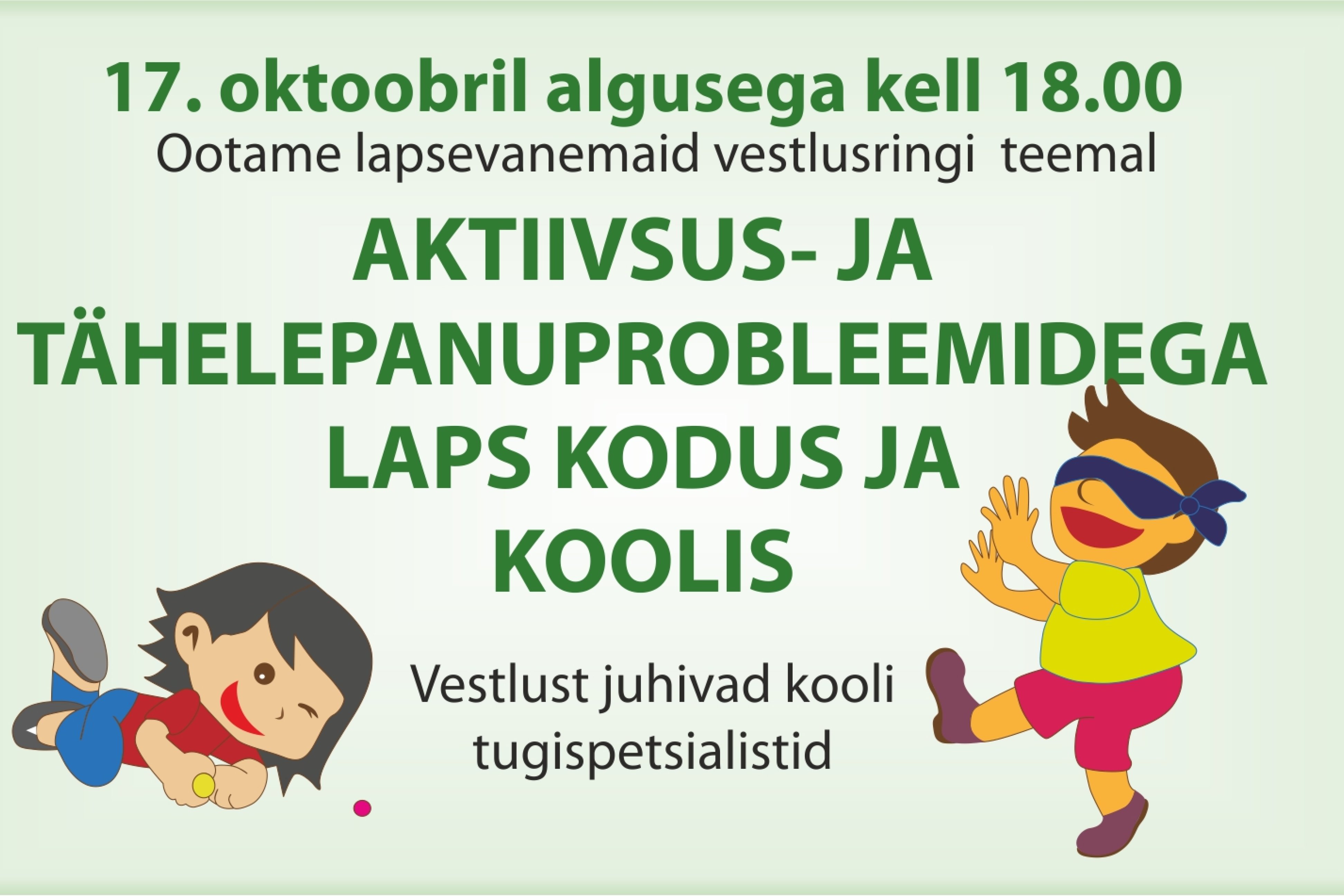 Kutsume ühinema vanemaid, kellel on laste kasvatamisel tekkinud küsimusi ja muresid. Püüame anda asjakohast nõu ja tuge ning kaasame vajadusel eksperte. Vestlusringi läbiviijateks on Näpi kooli tugispetsialistid.