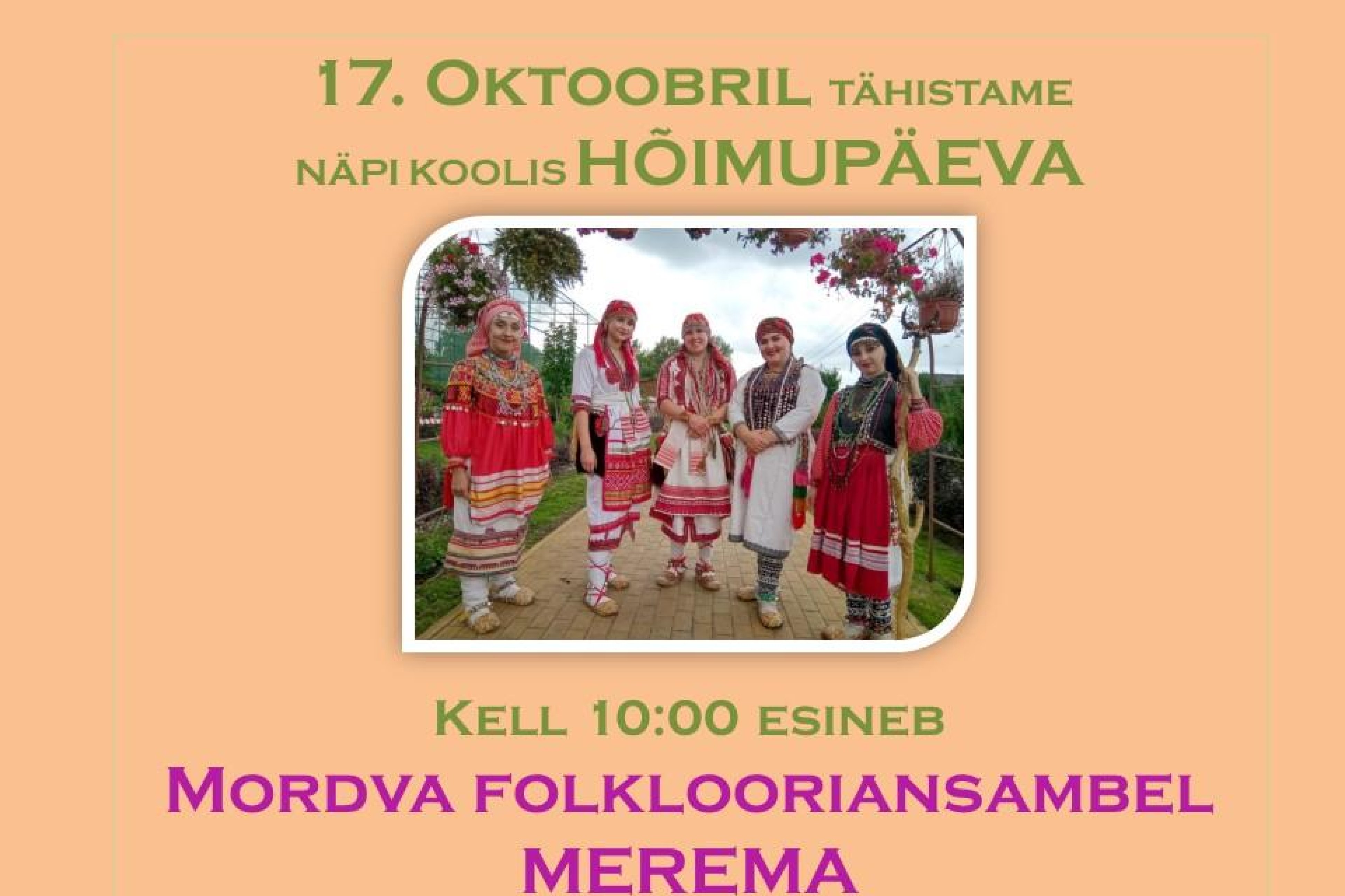 Erilise tähendusega päeva puhul külastab Näpi Kooli Folklooriansambel MEREMA, kes annavad kell 10:00 kooli aulas kontserdi.