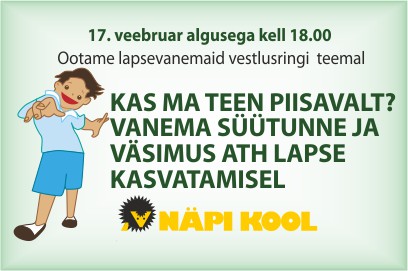 Näpi kool otsib õpetajat üks-ühele õppetöö läbiviimiseks! Loomise kuupäev 26.01.2026 Autor Birgith Balõtšev ATH tugirühma kohtumine 27.01.26 Loomise kuupäev 20.01.2026 Autor Näpi Kool ATH tugirühma kohtumine 16.12.25 Loomise kuupäev 09.12.2025 Autor Näpi Kool Rahatarkust täis nädal Loomise kuupäev 17.11.2025 Autor Liis Tomasov Vaata rohkem