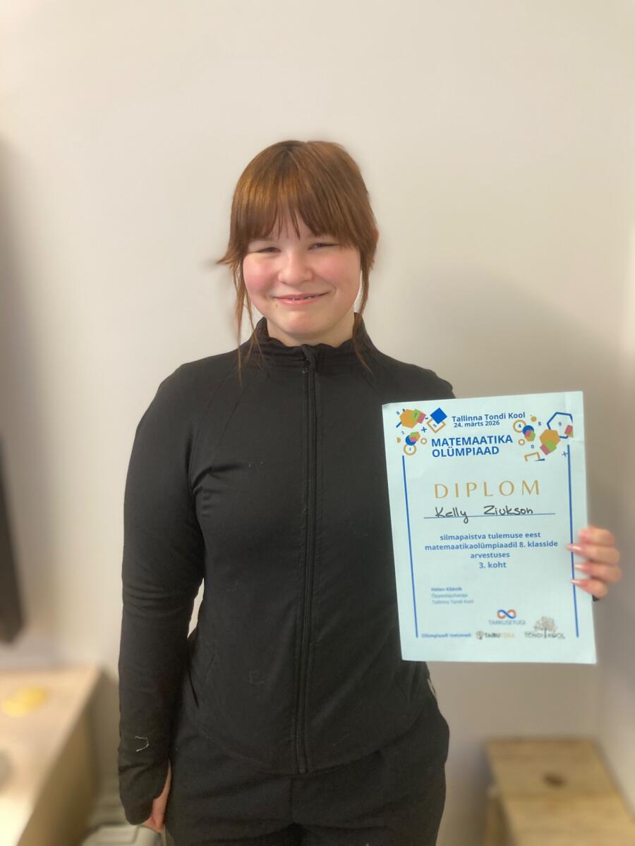 Palju õnne Kellyle ja tema juhendajatele kogu koolipere poolt!